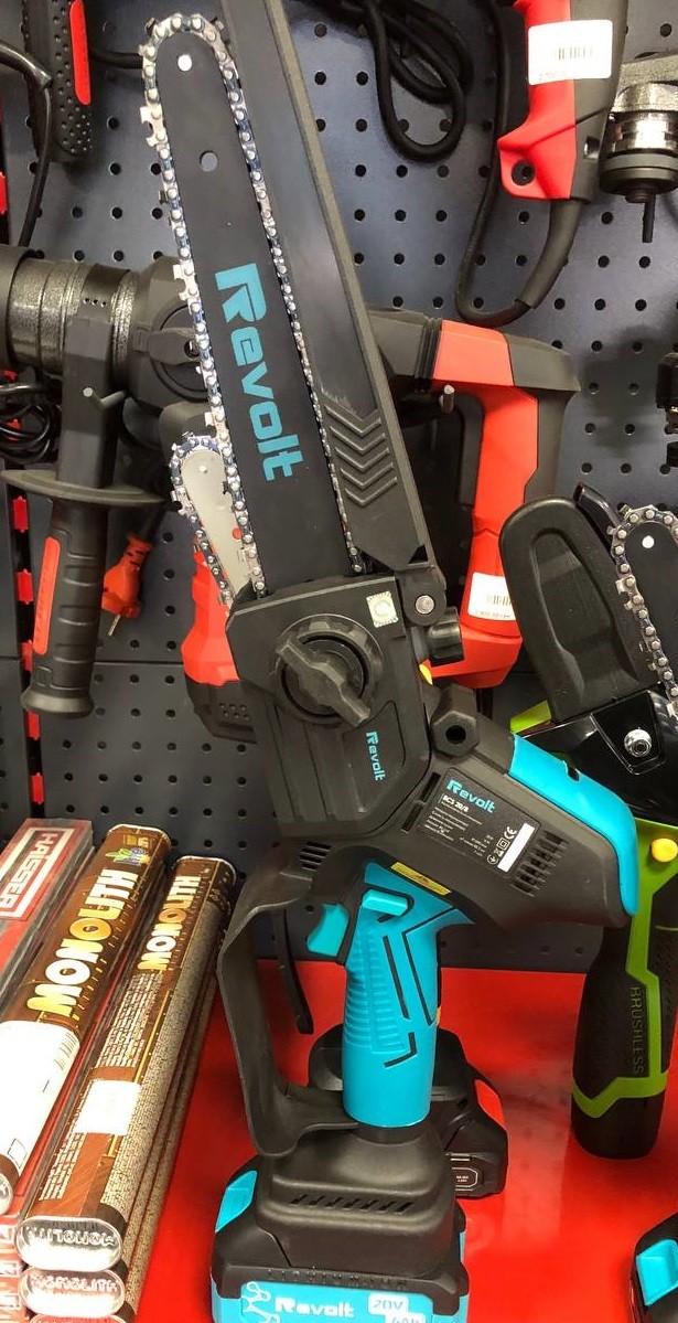 Акумуляторна ланцюгова пила Revolt BCS 20/8 — це портативний інструмент для обрізання дерев і дощок, належить до серії М1, що дає змогу використовувати пилу з акумуляторами Makita. Пила має безщітковий двигун, легку вагу й ергономічну форму, що забезпечує комфортну роботу.