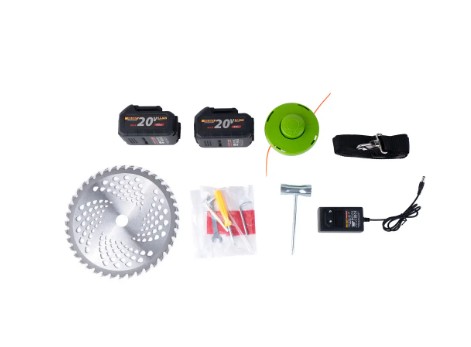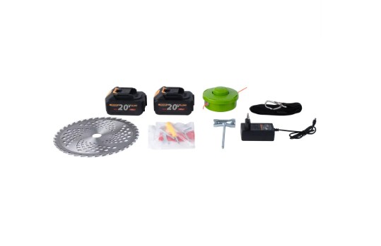 Завдяки двом акумуляторам у комплекті, ви можете працювати довше без перерв на зарядку, що робить цей тример зручним вибором для догляду за садом або присадибною ділянкою.