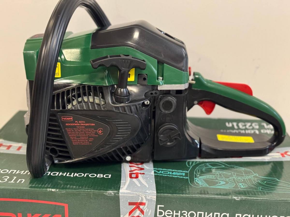 Бензопила NOWA PL 5231n - це якісна модель для заготовки дров, валки та чистки дерев. Працює від мотора потужністю 3100 Вт. Наявність шини, довжина якої 18" чи 45 см дозволяє пиляти товсті колоди, брус. Автоматичне змащування пильного ланцюга подовжує срок її служби. Антивібраційна система зменшує втомлюваність оператора. Особливістю пили є хромовані стінки циліндра та система легкого старту.