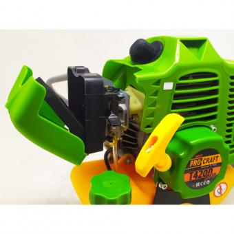 1) Потужний двигун: Бензокоса ProCraft T-4200 Pro оснащена потужним двигуном з об'ємом 52 СС кубічних сантиметрів і потужністю 4,2 кВт, що дозволяє розрізати товсті і жорсткі стебла з легкістю.