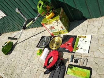 6) Наявність різних насадок: Інструмент оснащений різними насадками, що дозволяє використовувати його для різних типів робіт, включаючи різання трави, кущів, різання різних видів лісу і т.д.