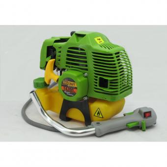 Коса має порівняно невелику вагу (8 кг) і оптимальну висоту штанги, що робить її використання максимально комфортним. Пристрій надійно фіксується на плечах за допомогою зручного ременя. Ергономічна двобічна рукоятка з пусковим важелем забезпечує просте управління бензокосою.