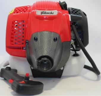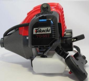 Коса бензинова Tokachi TG-55T з електростартером відноситься до напівпрофесійного класу мотоінструменту, завдяки потужному двигуну та надійній конструкції вона здатна тривалий час працювати на складних ділянках. Мотокосу Tokachi TG-55T можна купити як для приватних господарств, так і для обробки великих ділянок. У даній моделі використовується приводний вал, а не гнучка передача, що забезпечує великий ресурс приводної системи та її високу надійність. Двигун потужністю 4,3 кВт, розрахований на великі навантаження і має хороше тепловідведення, що дозволяє працювати цим інструментом тривалий час. Повністю металевий редуктор, посилена поршнева група та хромування циліндра, забезпечує високу витривалість інструменту. Для захисту мотокоси від надмірних навантажень встановлений захист від перегріву, який вимкне інструмент у разі критичного навантаження. Ручки велосипедного типу з винесеними на них органами управління дуже зручні і дозволяють працювати мотокосою тривалий час.