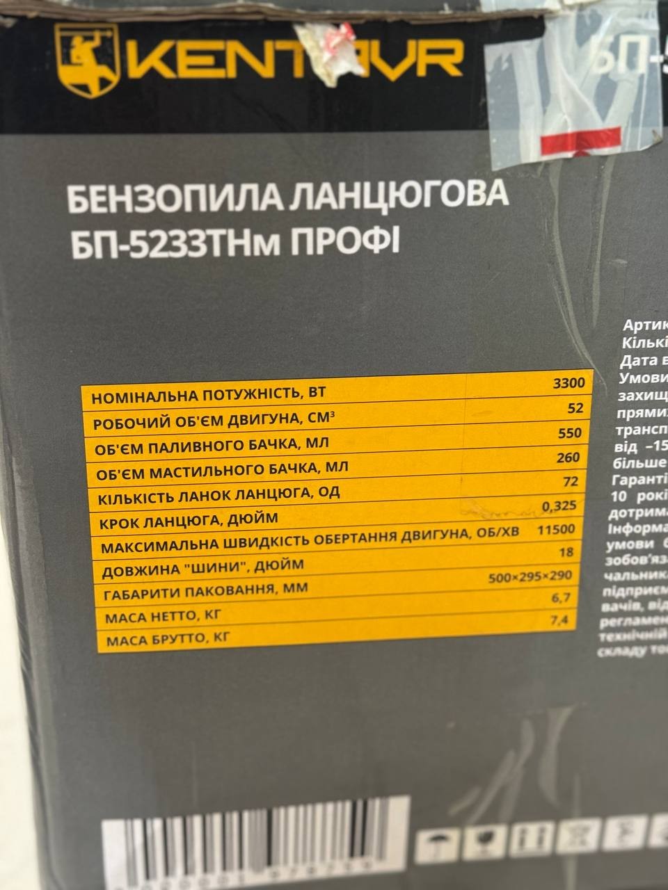 Бензопила ланцюгова Кентавр БП-5233ТНм Профи