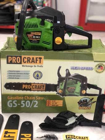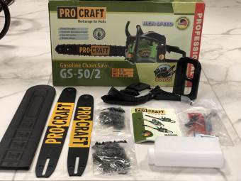 Бензопила Procraft GS-50/2 - недорога та якісна пила для дому, її потужність: 4100 Вт/5.6 к.с та об'єм двигуна: 52 куб.см. - це те, що робить бензопилу Procraft GS-50/2 ідеальним інструментом для виконання найважчих завдань. Вона легко справляється з розпилюванням дерев будь-якої складності та розміру завдяки високим оборотам у 8000 об/хв. З такою продуктивністю, ви заощадите час і сили під час рубання лісу або обрізки сучків.