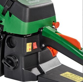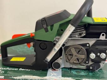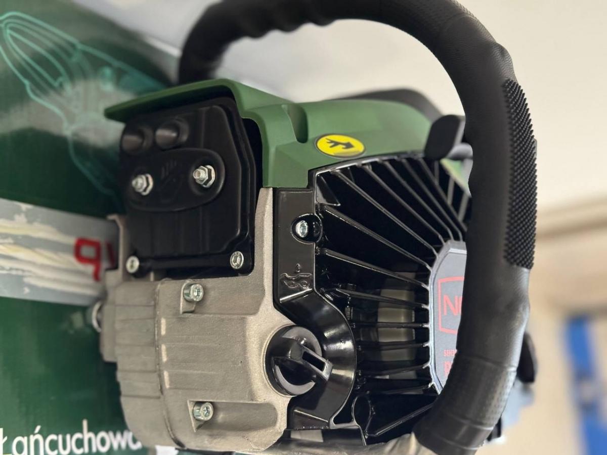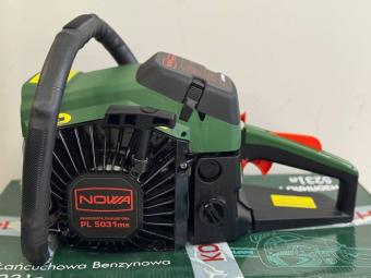 Ця модель Бензопила Nowa PL 5031 має ергономічний, ударостійкий корпус, якісне збирання. Двотактний двигун інструмента вирізняється підвищеним робочим ресурсом і економною витратою палива. Потужність його становить 2 кВт. Бензопила Nowa PL 5031 0 має швидкий доступ до повітряного фільтра та свічки запалювання, а також полегшений механізм натягування ланцюга. Ланцюг цієї моделі змащується автоматично, що запобігає надмірному нагріванню шини та ланцюга.