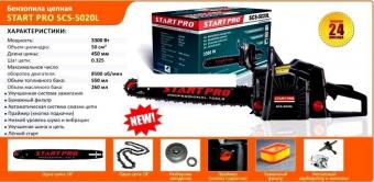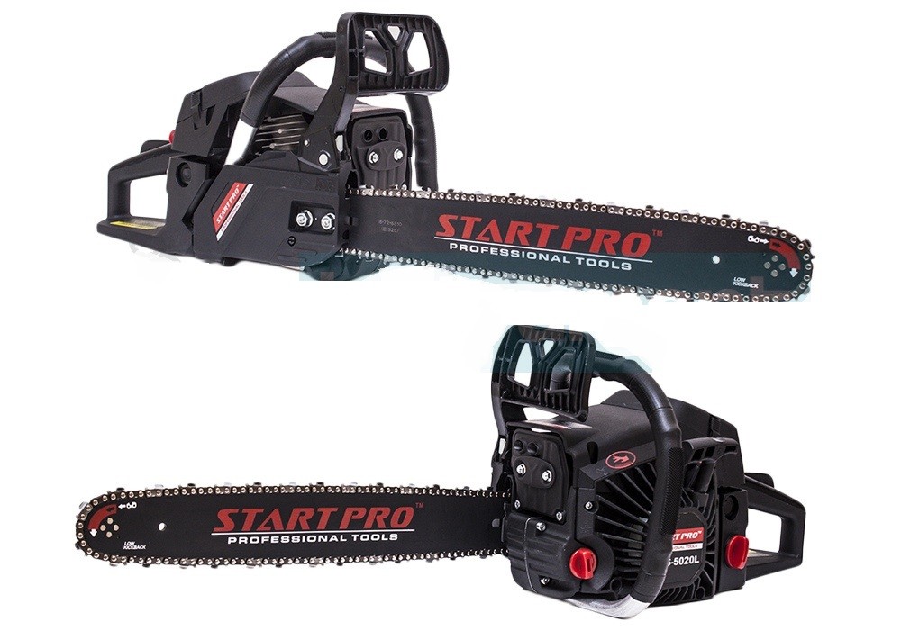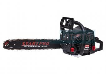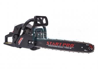 Бензопила START PRO SCS-5020L - це надійний інструмент високої якості, який використовується для валки і підрізування дерев, заготівлі дров, а так само для іншої роботи по дереву. З цією пилкою ви зможете ефективно працювати як в горизонтальній, так і вертикальній площині. Дана модель оснащена якісним виконанням і двотактним двигуном, потужність якого становить 3,3 кВт. Довжина шини в 45 см і кроком ланцюга 0,325 дюйма дозволяє працювати з досить великими колодами, а система автоматичного змащення ланцюга забезпечить своєчасну мастило, що допоможе уникнути неприємні поломки, продовжить термін служби інструменту і полегшить догляд за ним.