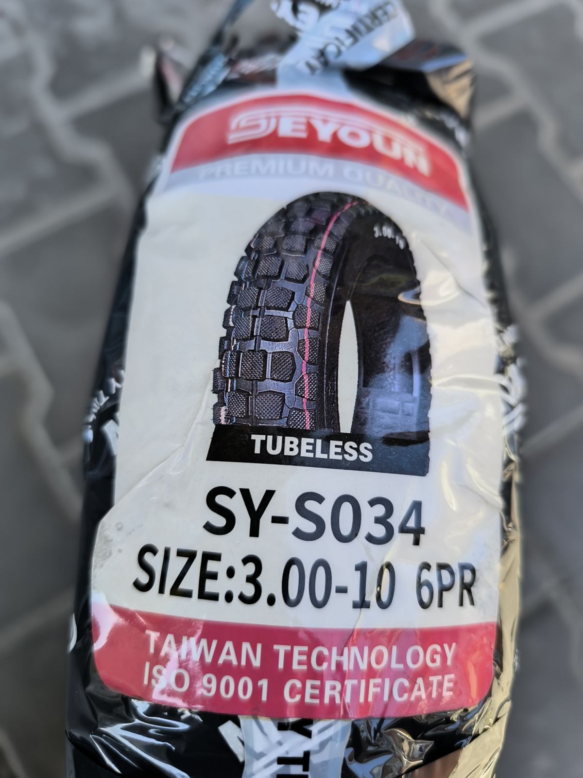 Шина безкамерна на 3.00-10 SY-S 034 6PR (шестишарова), якісна, м'яка шина.
