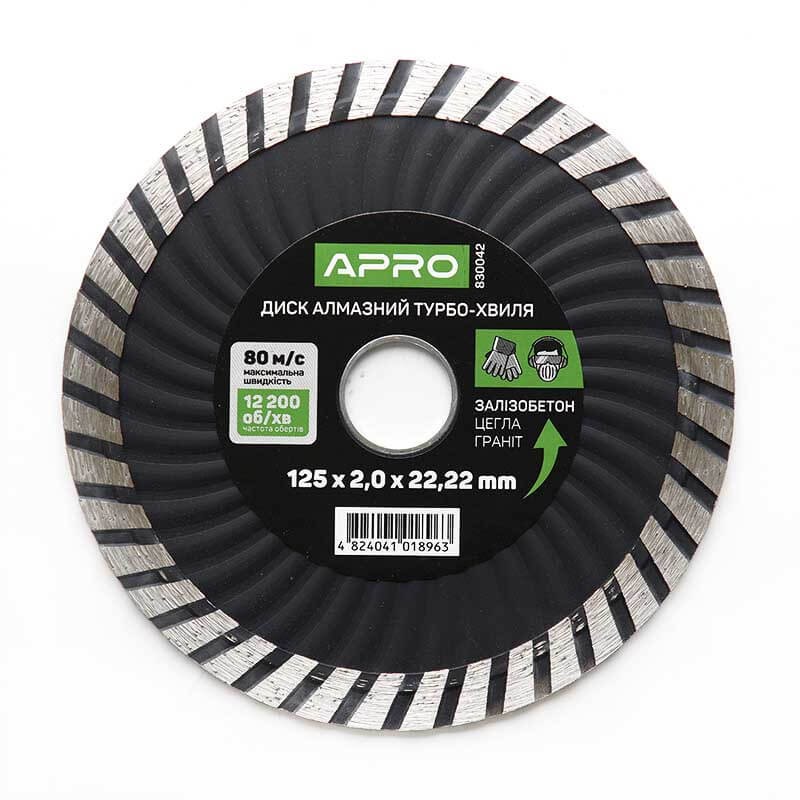 Диск до бетону 125х2,0мм (22-24%) турбо-хвиля APRO