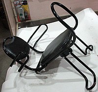 Дитяче сидіння прикручується до заднього багажника велосипеда. Залізний каркас. Стійки для ніг. Ремінь безпеки. Спинка сидіння складається тобто на багажник можна ставити сумки або перевозити об'ємний вантаж. Все для зручності.