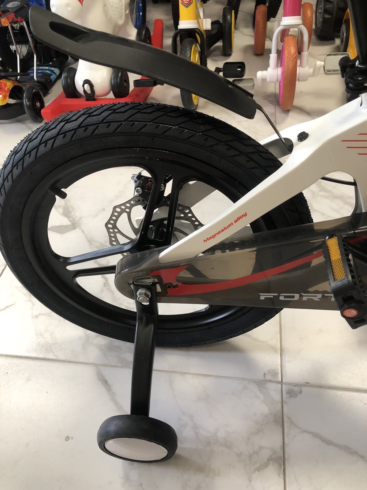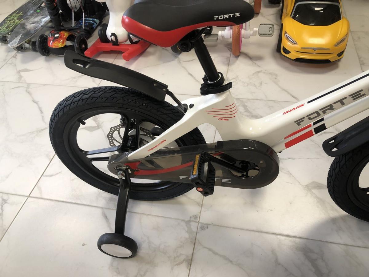 Дитячий велосипед SHARK – зручна та красива новинка від Forte. Рама велосипеда виконана з легкого та якісного алюмінію, кермо із міцної сталі. Відрізняється стильним дизайном та зручністю в експлуатації. Колеса 18" розміру з переднім гальмом. Модель підходить для навчання та практики їзди, тому що оснащена додатковими маленькими знімними колесами. На цьому велосипеді дитина весело та безпечно зможе здійснювати свої перші поїздки.