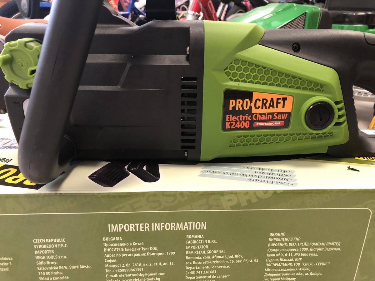 Електропила РroСraft K2400 ― потужна електрична пилка, призначена для розпилу деревини, валки дерев, видалення гілок, сучків тощо.