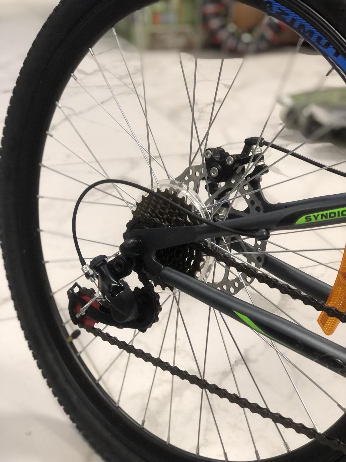 Azimut Blackmount 26 пропонує вам за прийнятну ціну класичний двопідвісний гірський велосипед з якісним навісним обладнанням початкового рівня, який ідеально підійде як для міських прогулянок, так і для підкорення пересіченої місцевості. Хоча велосипеди із заднім амортизатором і важать більше, і трохи важче в ходу, він все-таки зможе забезпечити Вам відчутний додатковий комфорт і вбереже раму і колеса від пошкоджень при невеликих стрибках і з'їздах з перешкод. Амортизаційна вилка, яка традиційно супроводжує гірський велосипед будь-якого рівня, допоможе краще контролювати трасу і значно знизить навантаження на руки, а відповідно і Вашу втому. Дана модель комплектується вилкою Zoom disk AMT 26 "з ходом близько 60 мм. Конструкція вилки проста і надійна і складається з нерегульованої сталевої пружини, сталевих штанів і ніг. Основним плюсом цієї вилки є її невимогливість, а саме: Вам взагалі не доведеться її обслуговувати! як і будь-який сучасний гірський великий Azimut Blackmount 26 обладнаний дисковими гальмами з механічним приводом, які відмінно впораються з гальмуванням в будь-яких умовах, а також підвищать безпеку у порівнянні з ободними гальмами, тому що не дозволять заблокувати колесо при гальмуванні. Трансмісія велосипеда класична на 21 передачу, перемикання забезпечується перемикачем і манетками. Задній перемикач працює автоматично і перемикає виключно по зірочках, передній, однак, має класичну конструкцію і вимагає, щоб за ним стежили в момент перемикання. Хоч це і здається складніше , але така конструкція має велику перевагу, фрикційний перемикач практично не чутливий до тонкої настройки і Ви завжди можете його підтягнути щодо задніх зірок прямо на ходу! Звичайно ж, щоб забезпечити максимальну стійкість навантаженням велосипед обладнаний подвійними посиленими алюмінієвими ободами і надійної гумою.