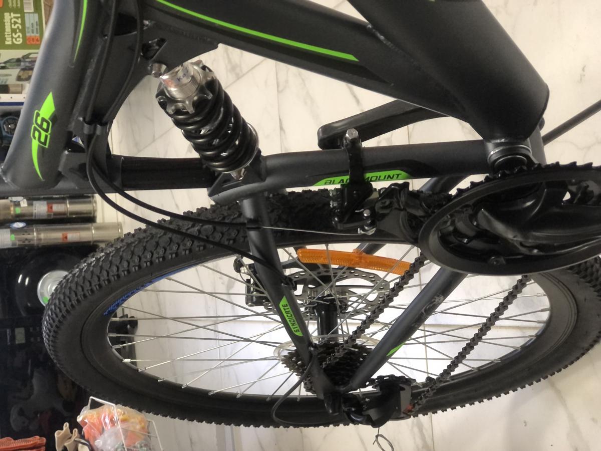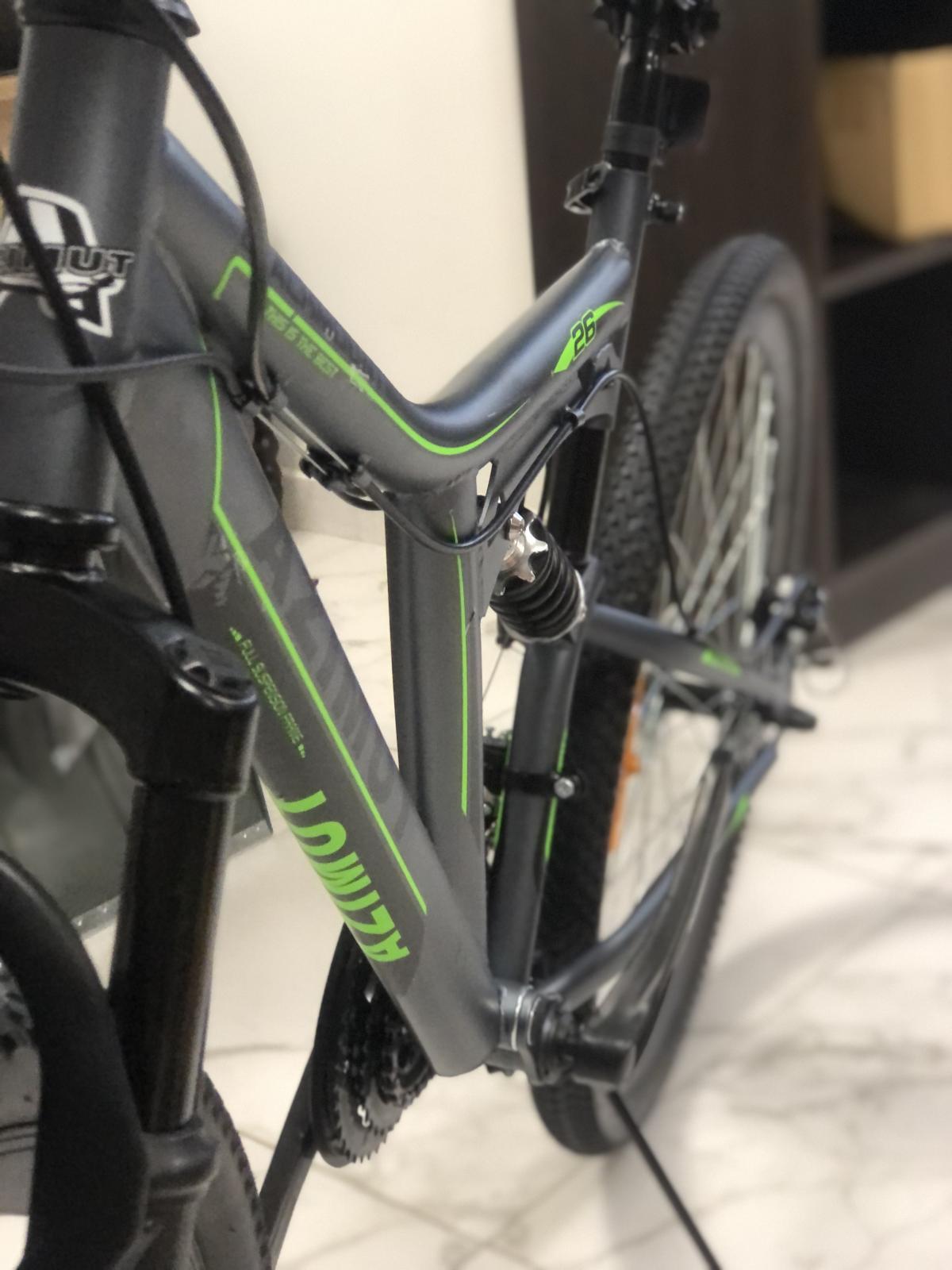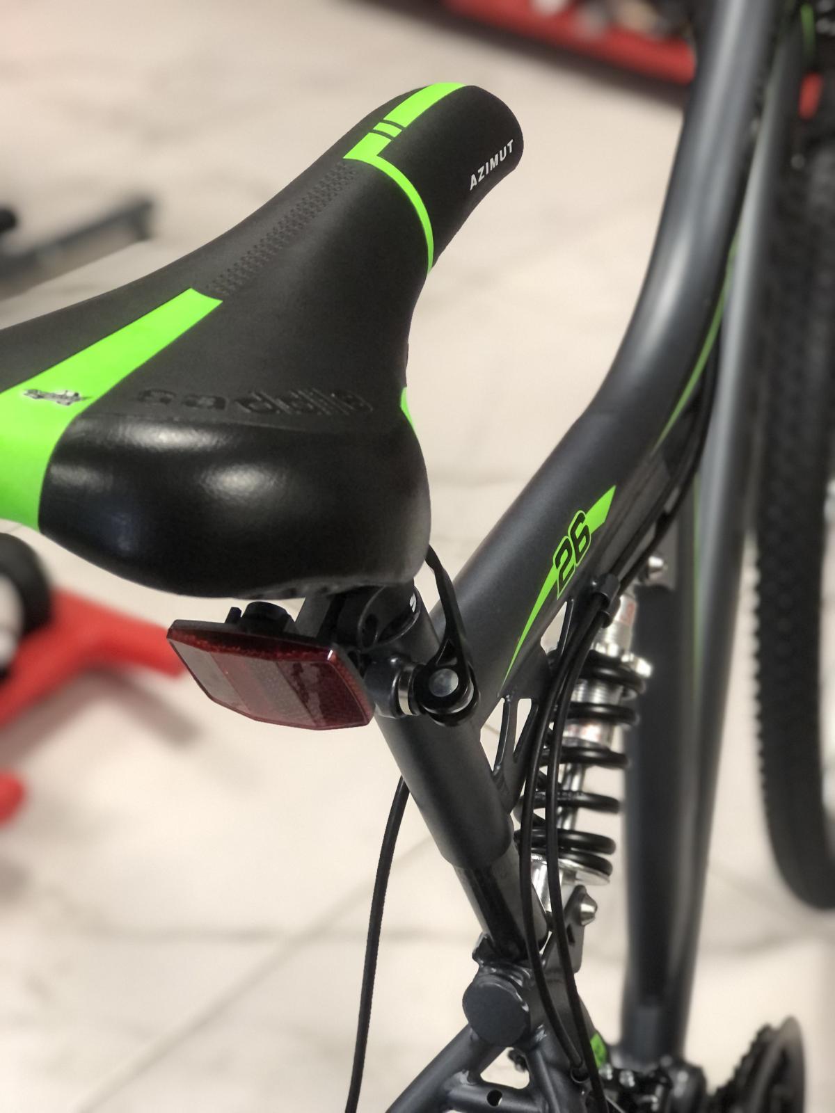 Azimut Blackmount 26 - Двохпідвіс аматорського рівня, для тих, хто тільки хоче зрозуміти, чи потрібен йому задній амортизатор. Найчастіше такі велосипеди вибирають ті, хто віддає перевагу комфорту або підлітки через незвичний дизайн. Така конструкція дійсно здатна забезпечити більш м'яку їзду, хоча і на шкоду швидкості, до того ж Вам доведеться витрачати значно більше енергії, пересуваючись на такому апараті. Підліткам же, які хочуть спробувати вичавити з велосипеда максимум, при цьому не шкодуючи сам велосипед, задній амортизатор допоможе уникнути різного роду пошкоджень важливих вузлів, таких як вісі або колеса.