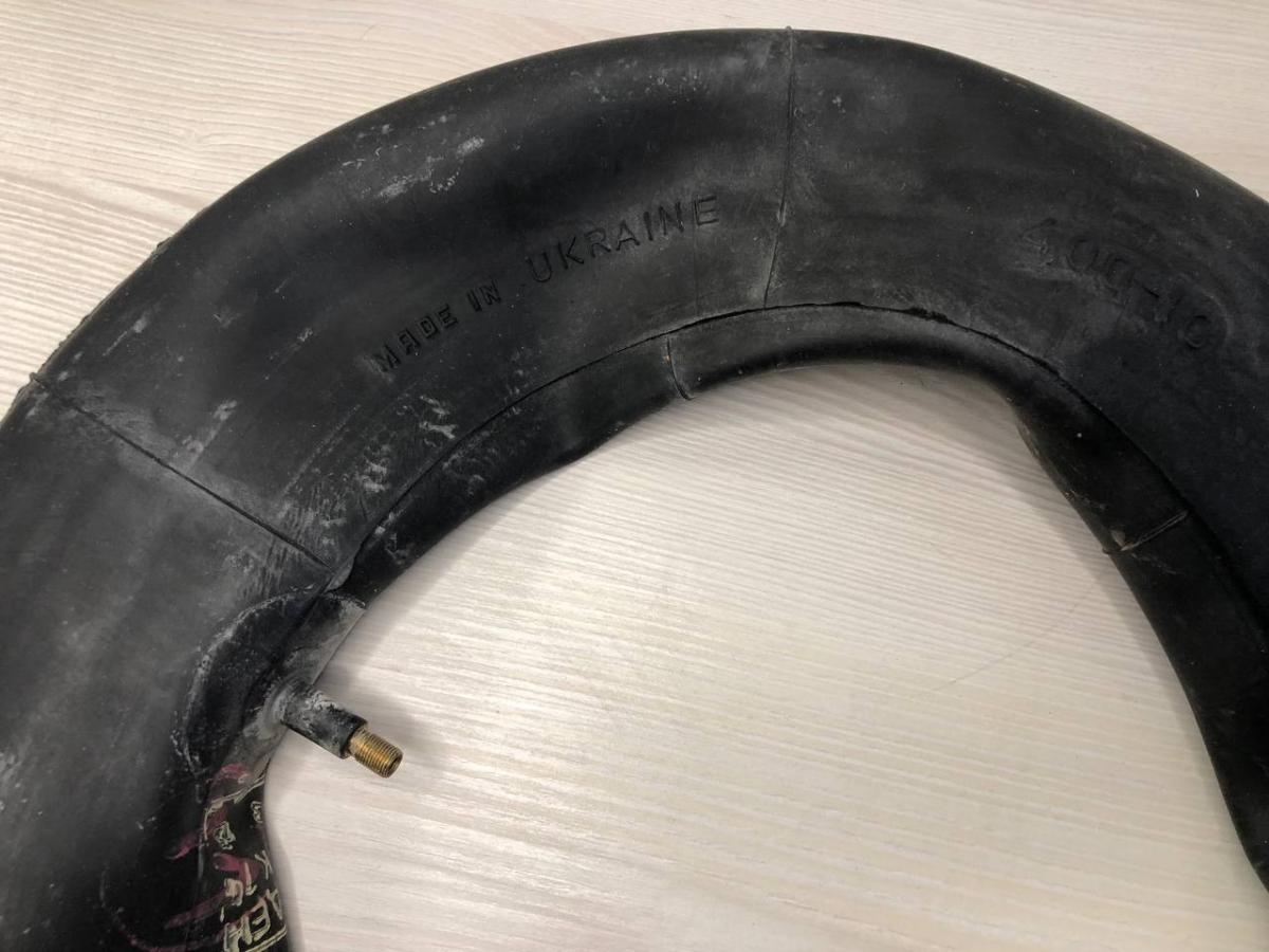 Камерою розміром 4.00-10 від фірми Росава, яка виробляється на українських заводах з використанням передових технологій та матеріалів найвищої якості.
