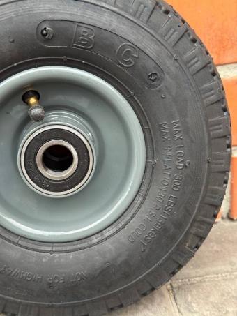 Пневматичне колесо поєднує в собі відразу декілька якостей, по-перше, воно має досить м'який хід. Диск даного колеса виготовлений з металу, а по обидва боки маточини вставлено два підшипники. Така конструкція дозволяє легко встановити колесо на стандартну вісь. І тепер ви зможете спокійно перевозити ваш візок де завгодно. Таким чином ви отримуєте м'який хід.