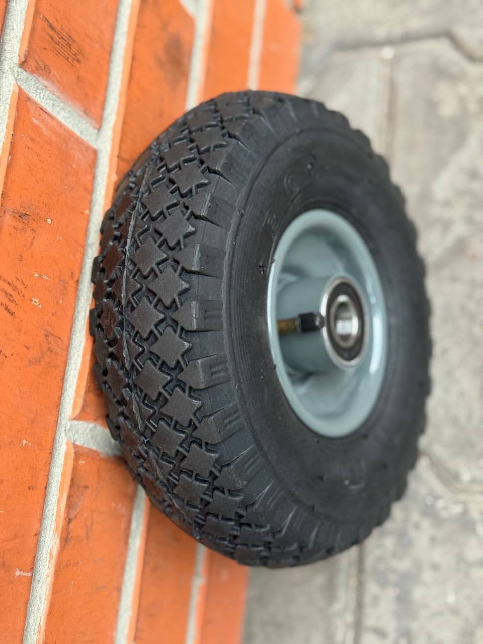 Пневматичне колесо поєднує в собі відразу декілька якостей, по-перше, воно має досить м'який хід. Диск даного колеса виготовлений з металу, а по обидва боки маточини вставлено два підшипники. Така конструкція дозволяє легко встановити колесо на стандартну вісь. І тепер ви зможете спокійно перевозити ваш візок де завгодно. Таким чином ви отримуєте м'який хід.