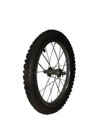 Колесо спіцованние переднє, розмір 16 дюймів, одностінний сталевий обід, сталева втулка на гайках. У комплекті камера і покришка 16 х 2,125.