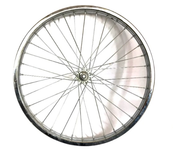 Колесо спіцованние переднє, розмір 24 дюйми, одностінний сталевий обід, сталева втулка на гайках.