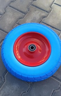 Пінополіуретанове колесо 3.50-8 для застосування на садових, будівельних тачках і візках.