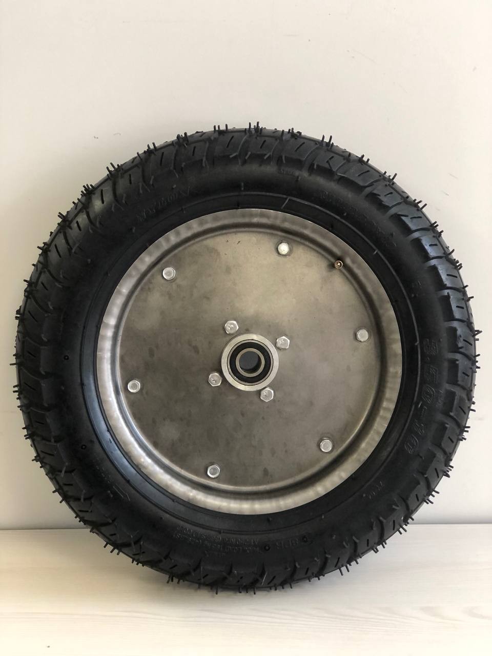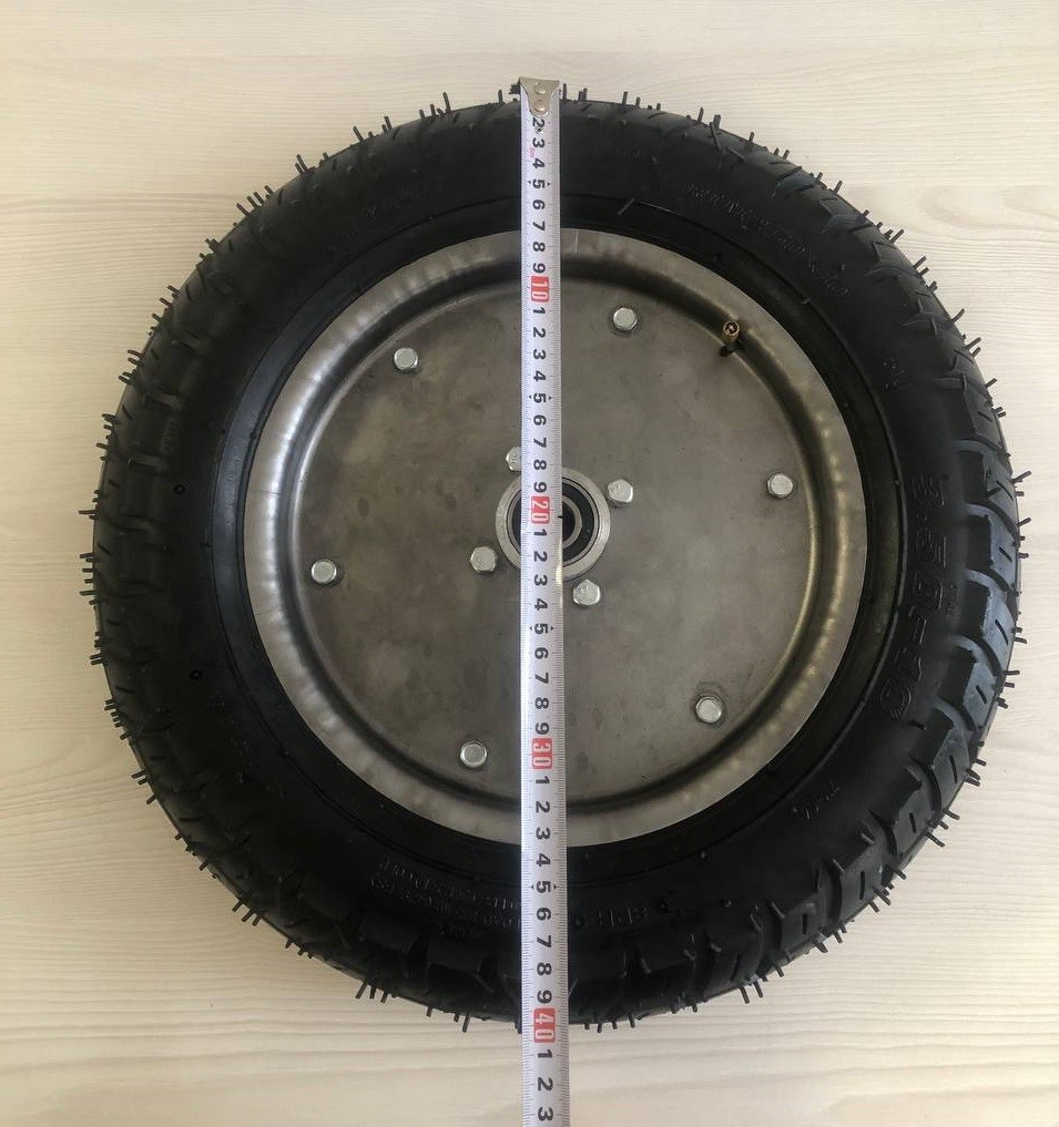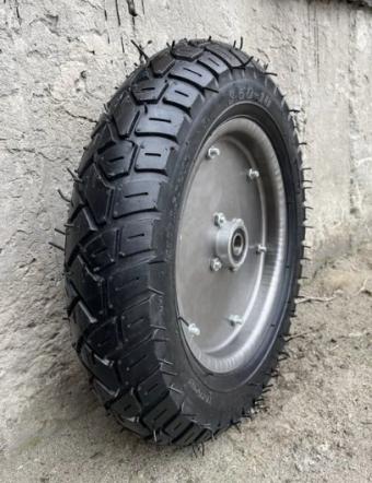 Висновок: Колесо 3.50-10 в зборі з розбірними дисками та універсальною ступицею — це практичне рішення, що забезпечує високу продуктивність та простоту обслуговування на будь-якому будівельному об'єкті чи присадибній ділянці.