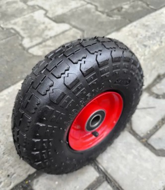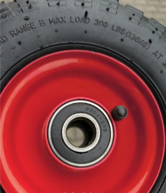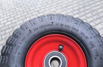 Пневматичне колесо поєднує в собі відразу декілька якостей, по-перше, воно має досить м'який хід. Диск даного колеса виготовлений з металу, а по обидва боки маточини вставлено два підшипники. Така конструкція дозволяє легко встановити колесо на стандартну вісь. І тепер ви зможете спокійно перевозити ваш візок де завгодно. Таким чином ви отримуєте м'який хід.
