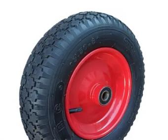 Колесо в зборі 3.50-8. Пневматичне колесо призначене для тачок та візків. Перевагою таких коліс є легке та плавне пересування бездоріжжям. За рахунок відмінної амортизації, удари коліс об каміння практично не передаються на корпус візка.