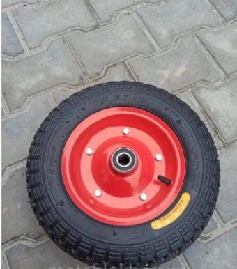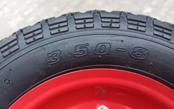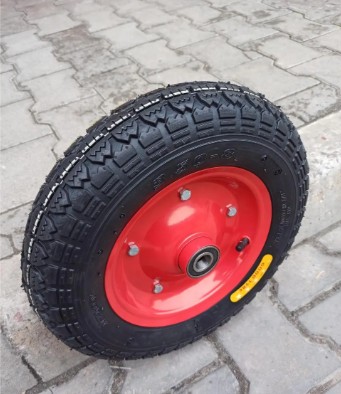 Колесо в зборі 3.50-8. Пневматичне колесо призначене для тачок та візків. Перевагою таких коліс є легке та плавне пересування бездоріжжям. За рахунок відмінної амортизації, удари коліс об каміння практично не передаються на корпус візка.