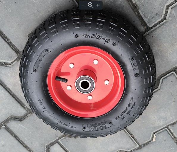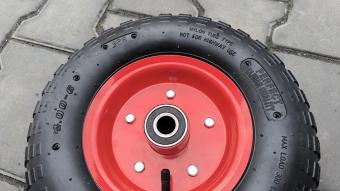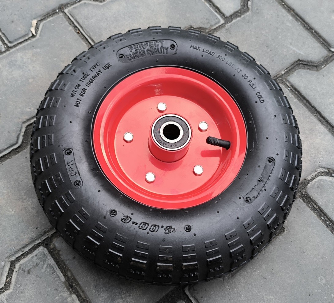 Колесо в зборі 4.00-6 виробник шини Тайвань 8 PR та підшипником 204-ий на 20 мм вісь - це надійне та зносостійке колесо з камерою, що забезпечує стабільну роботу на нерівному грунті та мінімізує ризик проколу.