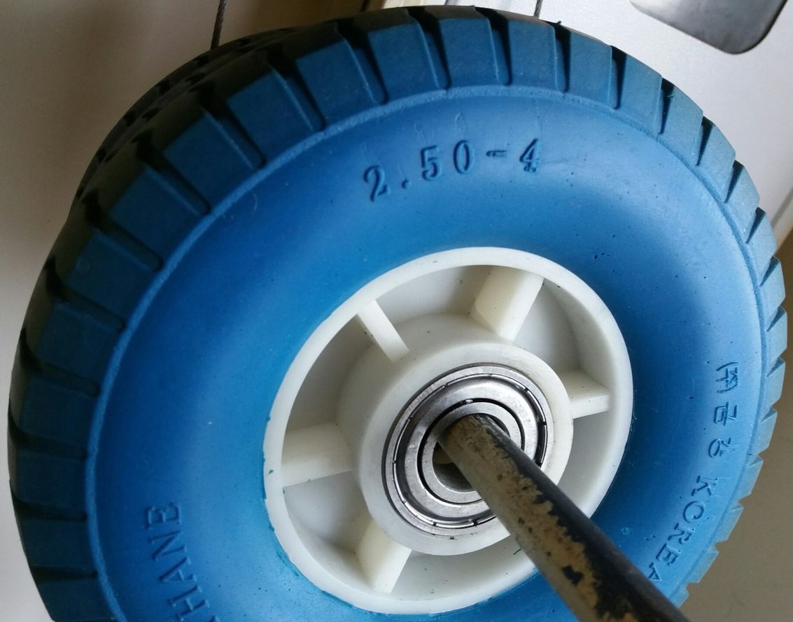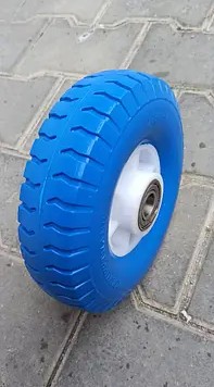Покришка колеса виготовлена зі спіненого поліуретану. В осі колеса подвійний кульковий підшипник, розмір - 204.