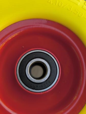Покришка колеса виготовлена зі спіненого поліуретану. В осі колеса подвійний кульковий підшипник, розмір - 204.