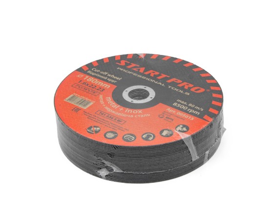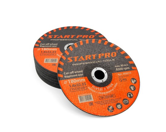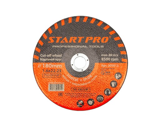 Коло відрізне START PRO 180 x 1.6 x 22,23 сталь - високоміцна насадка з круглим отвором у центрі, армована бакелітовим матеріалом, для професійних інструментів високої потужності. Тонкий диск призначений для порізки металу, має високу міцність, пружність, здатний згинатися під навантаженням.