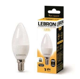 LED лампа LEBRON L-С37, 8W, 220V, Е14, 4100K, 720Lm.