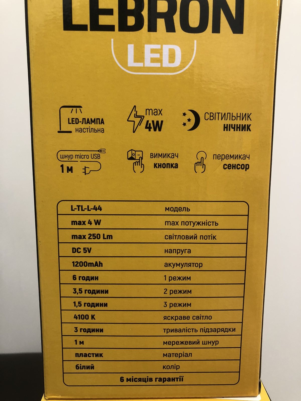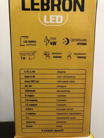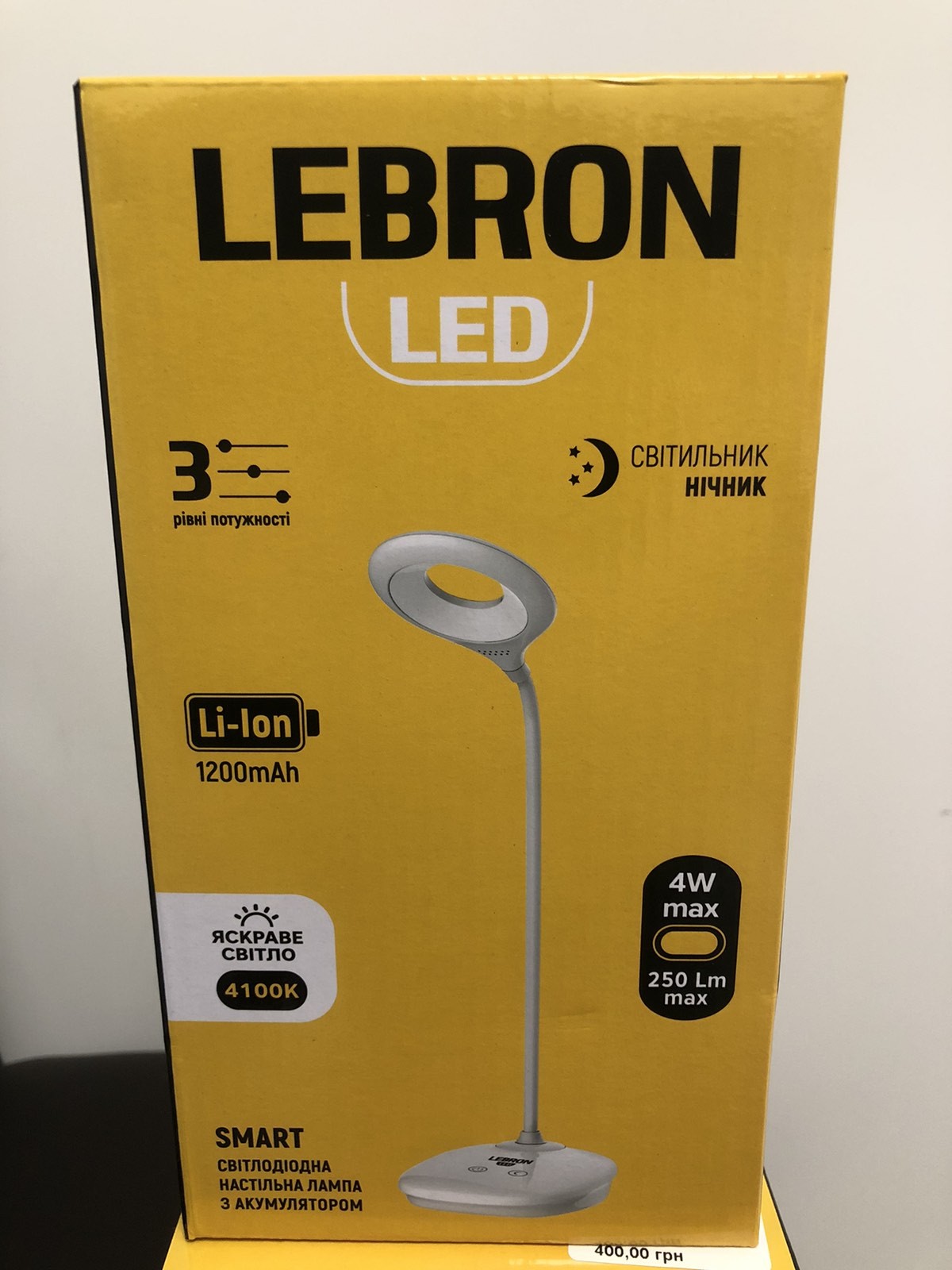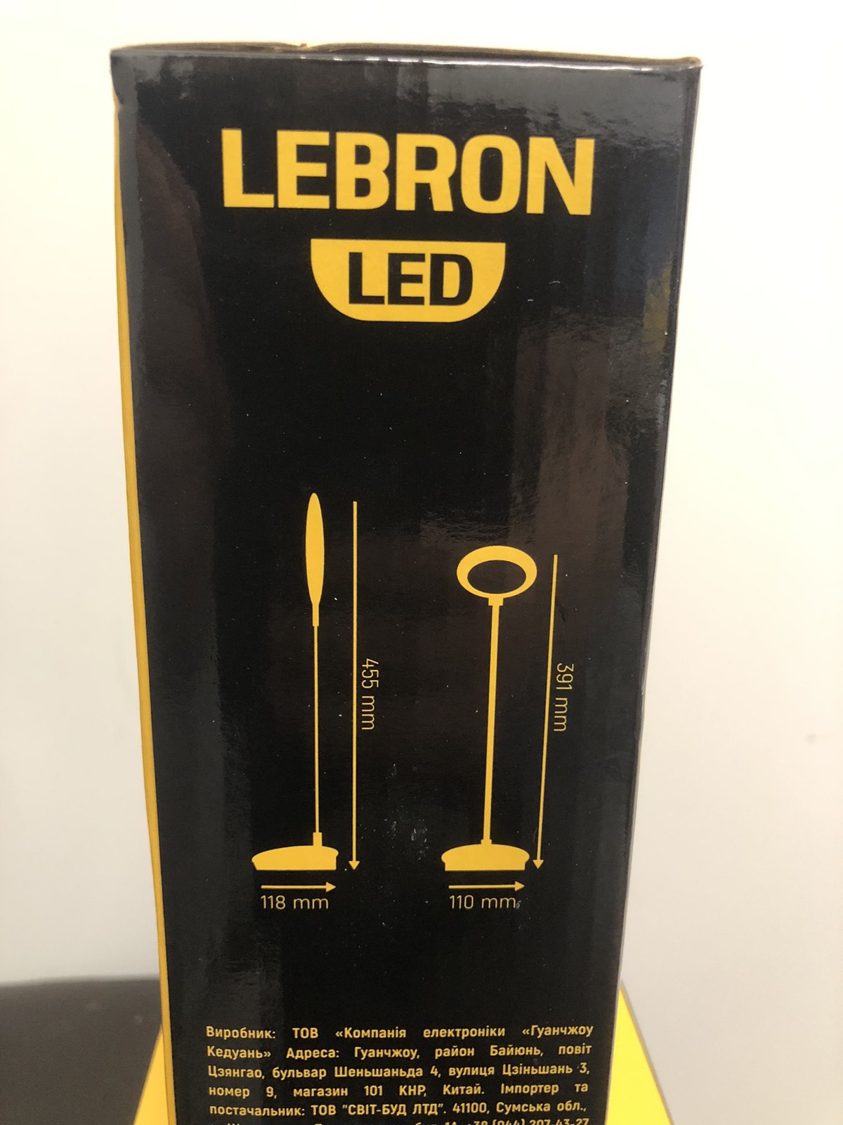 Світлодіодна лампа Lebron з акумулятором та нічником. Вона має стильний дизайн та гнучку ніжку, яка дозволяє регулювати будь-який кут і залишається жорсткою. Легка, зручна для транспортування. Ефективний та надійний світлодіодний світильник буде служити довго.