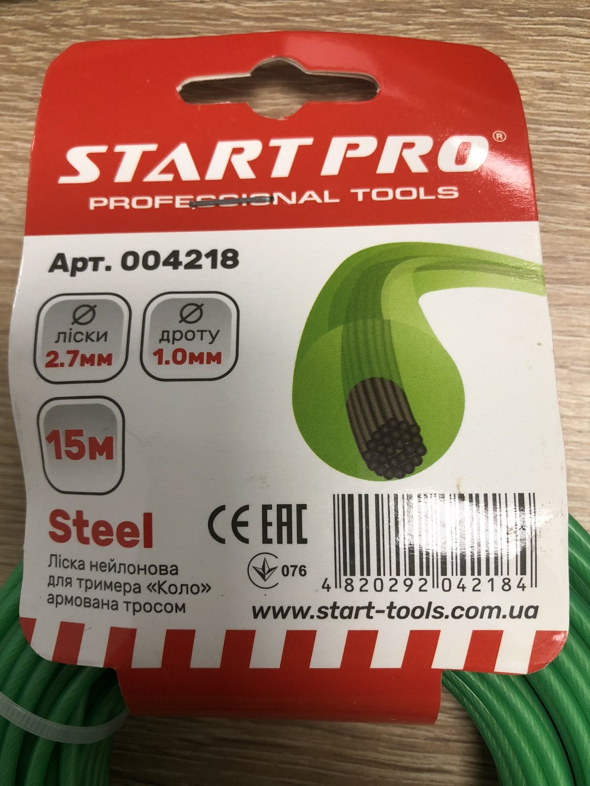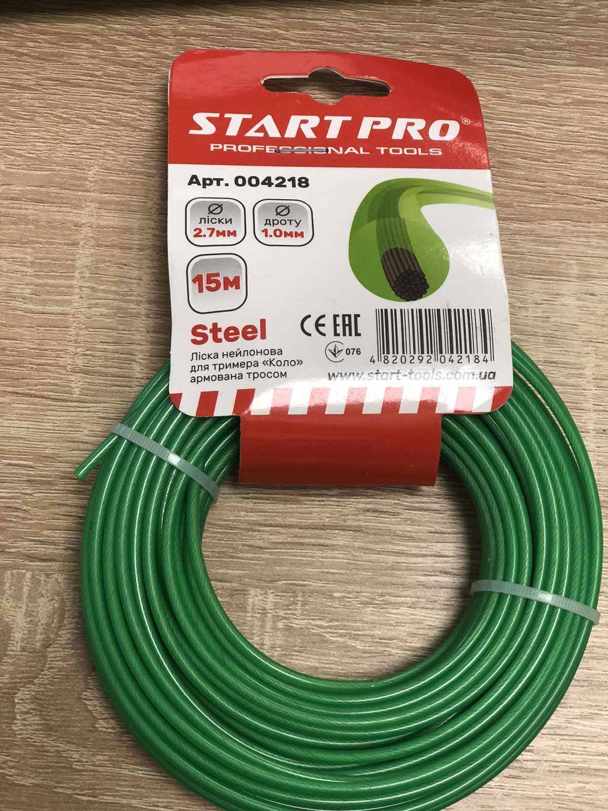 Ліска для тримера/мотокоси 15м., 2.7мм товщина ліски, 1.0мм товщина дроту, Коло (армована тросом)