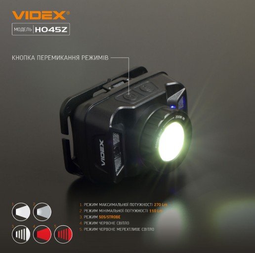 Налобний світлодіодний ліхтарик VIDEX VLF-H045Z 270Lm 5000K