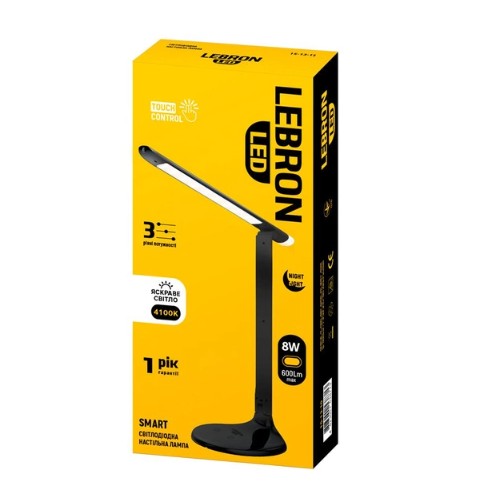 LED лампа настільна Lebron L-TL-L, 8W, 4100K, 3 рівні потужності, нічник, чорна, з блоком живлення виконаний у компактному корпусі розміром мм . Клас захисту від пилу та вологи - .