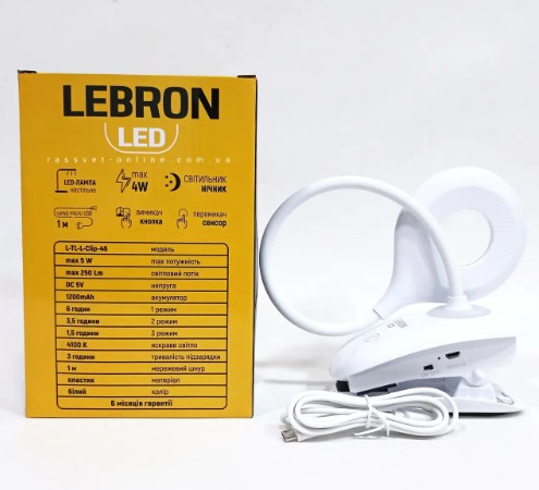 Настільна LED лампа акумуляторна Lebron L-TL-L-Clip-46 з нічником 5W 4100К біла