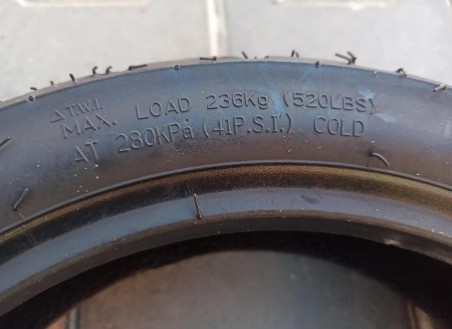 Тиск повітря у шині – 2.8 атм. = 280 KPa = 40 psi