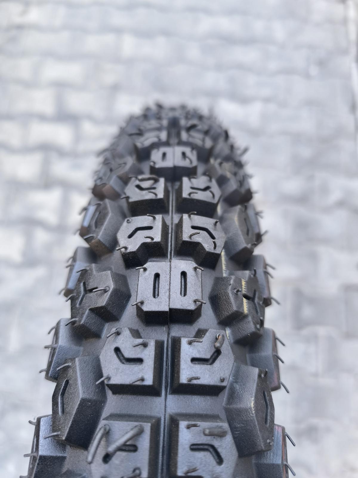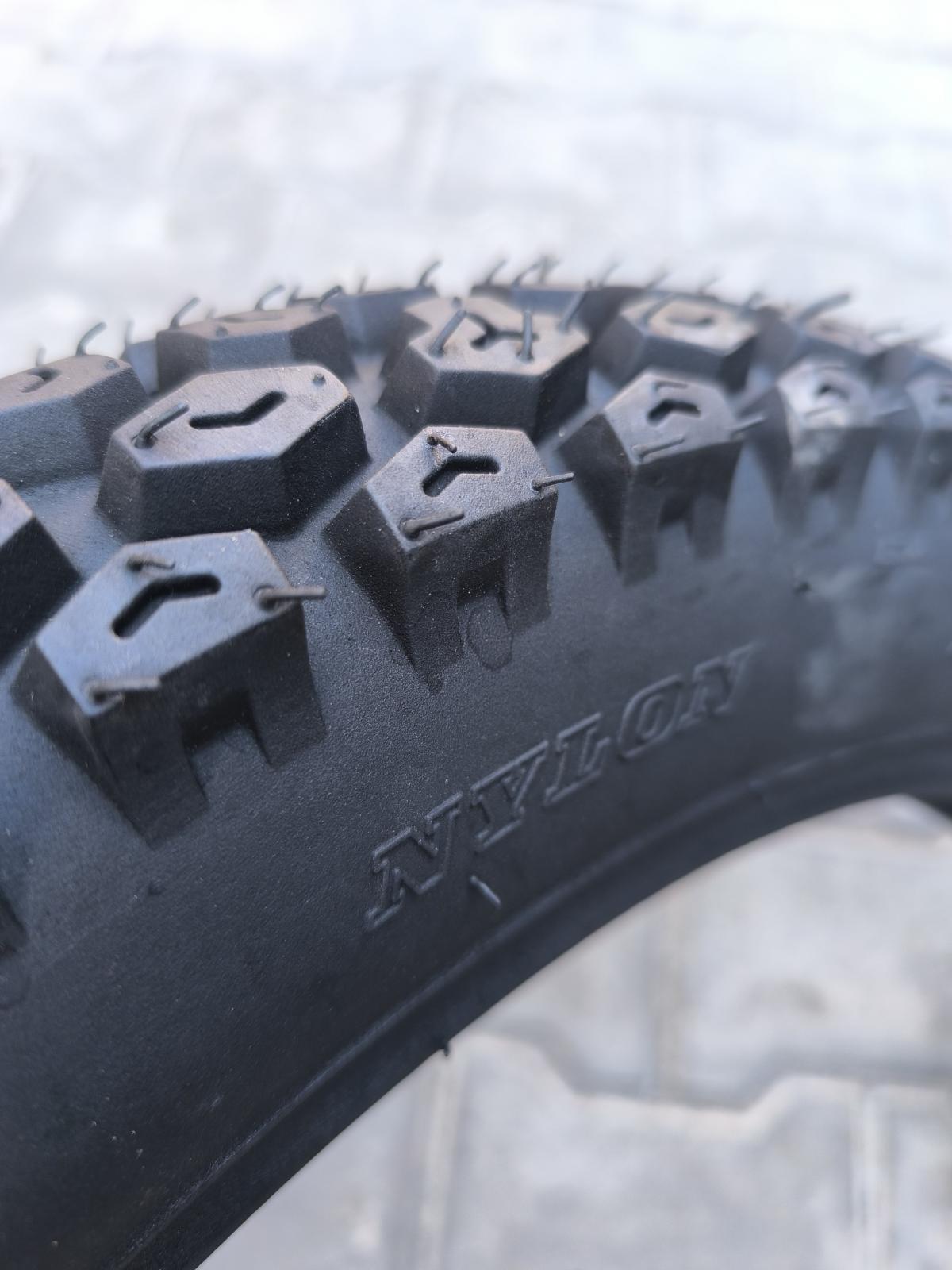 Шипи на протекторі забезпечують відмінне зчеплення на слизьких поверхнях, що підвищує безпеку під час їзди.