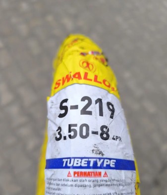 Покришка на скутер 3.50-8 S-219 камерна шина вироблена в Індонезії ( tube type ), максимальне навантаження на колесо - 172 кг, ширина 80 мм, якісна м'яка шина, покришка для скутерів / тачок / причепів/візків, виробник - Індонезія S-219