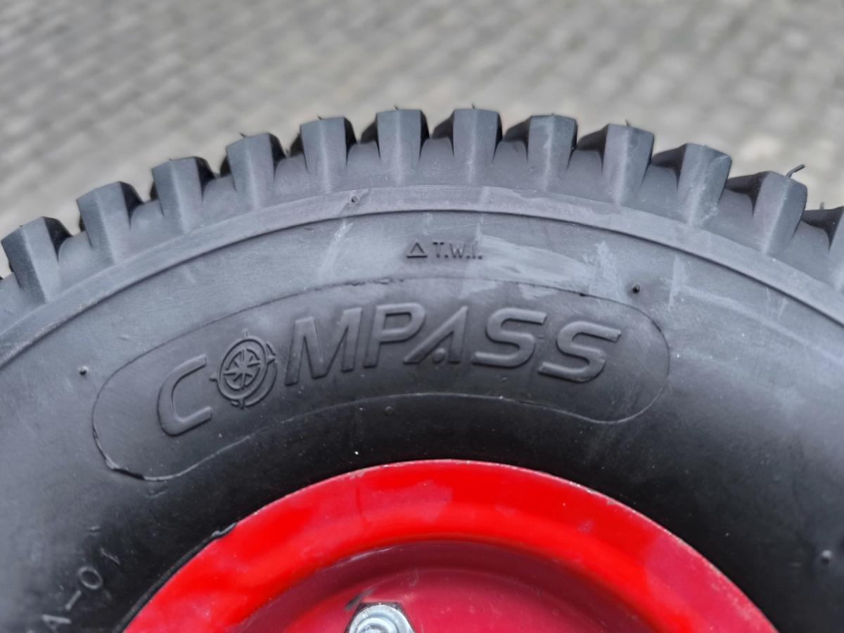 Покришка 4.00-4 від бренду Compass (або Wanda Compass) — це покришка для тачки або садового візка, що виготовлена з якісної гуми з 4-шаровим кордом (4PR), яка забезпечує довговічність і зносостійкість.