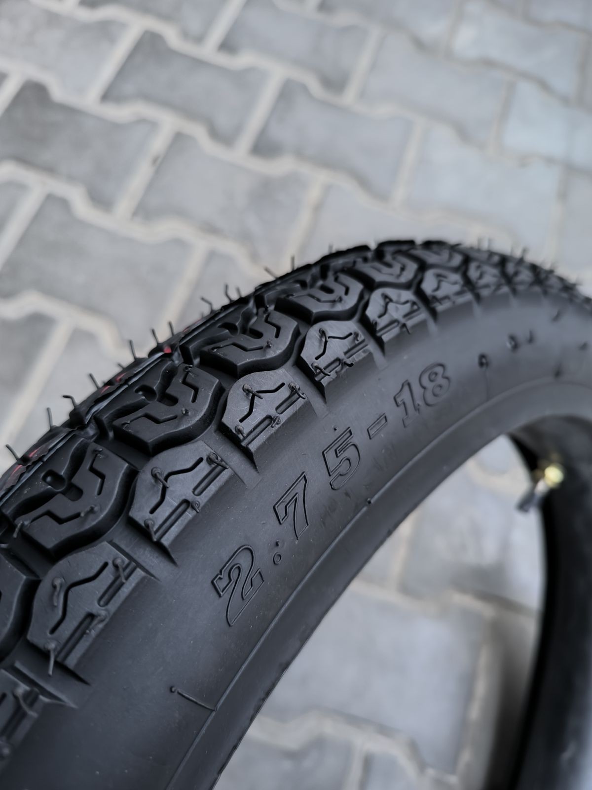 Покришка хорошої якості, мотошини для мотоциклів Мінськ, Ява, ІЖ, Viper, Zongchen, Mustang та інші. Покришка 2.75-18 з камерою для мотоцикла Мінськ - це технологічна дивина, що об'єднує в собі низку розробок і рішень, спрямованих на максимальну продуктивність і комфорт в кожній подорожі. Зовнішній вигляд покришки, застосований протектор і компоненти боковин - це результат мільйонів відділених годин інженерної роботи та тестувань.