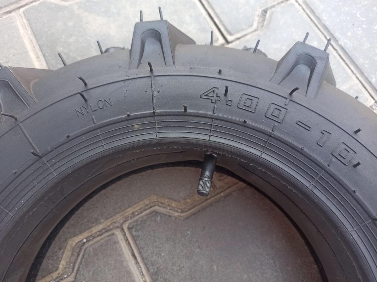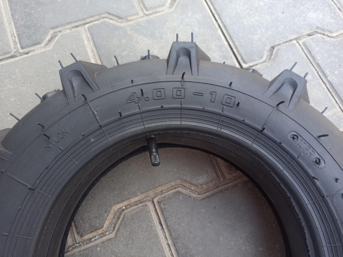 Покришка з камерою 4.00-10 призначена для використання на мотоблоках та інших легких сільськогосподарських машинках. Цей розмір покришки є оптимальним для забезпечення стабільності та комфорту під час роботи на нерівних поверхнях.