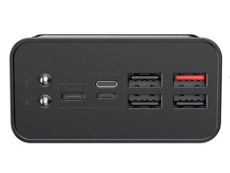 Повербанк 40000mAh HAVIT HV-PB56 Black QC+PD призначений для заряджання мобільних пристроїв. Він стане в нагоді в походах, подорожах, далеких дорогах, умовах відсутності електроенергії. Повербанк має ємність 40 000 мАг, оснащений 4-ма USB-роз’ємами, Micro USB, USB-C, Lightning і підтримує швидку зарядку PD18W+QC3.0. Також він має вбудований LED-дисплей, на якому відображається рівень заряду, та ліхтарик, завдяки чому виріб можна використовувати в якості підсвітки.