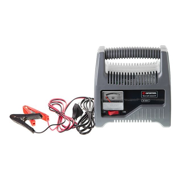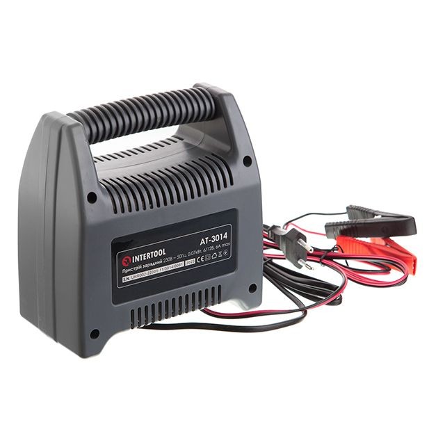 Компактний зарядний пристрій Intertool AT-3014 призначено для заряджання акумуляторних батарей 6 В і 12 В, ємність яких до 60 А·год. Пропонована модель зарядного пристрою підходить для заряджання акумуляторних батарей мотоциклів, автомобілів та інших механічних транспортних засобів. Живиться зарядний пристрій від побутової мережі з напругою 230 В.