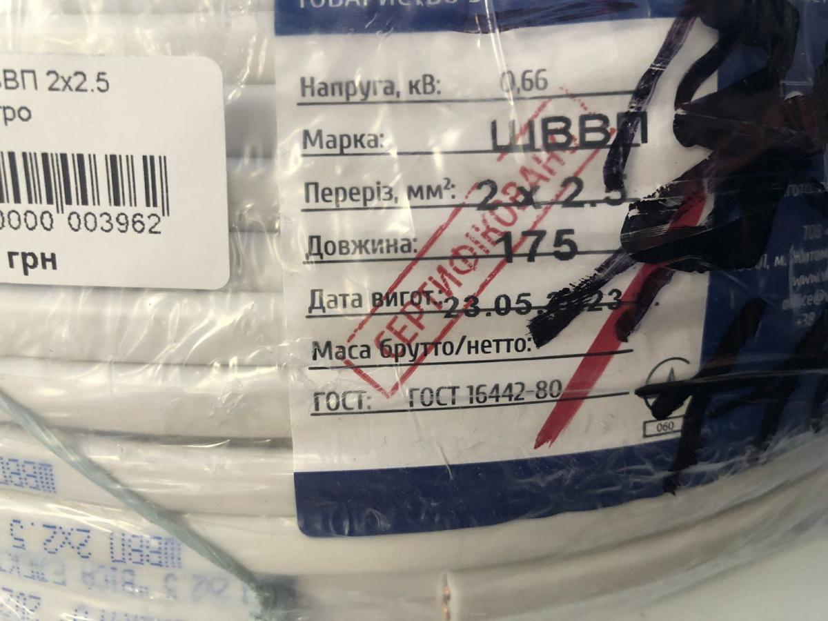 | Тип кабелю | ШВВП |