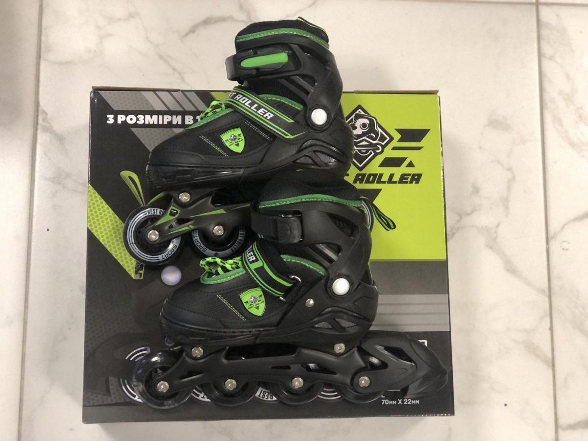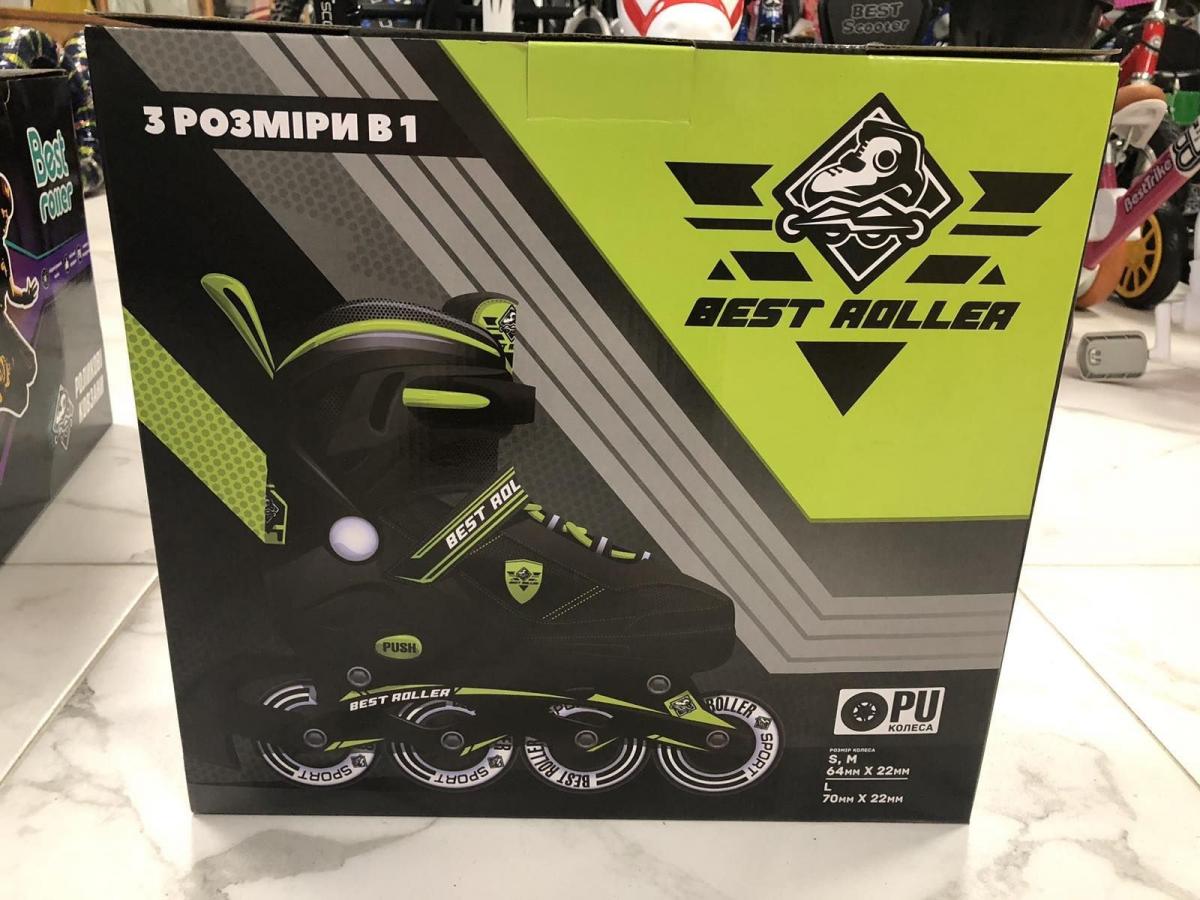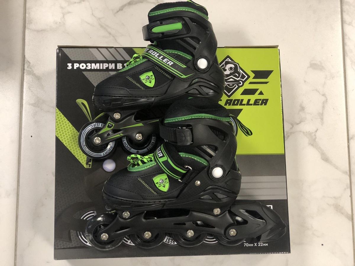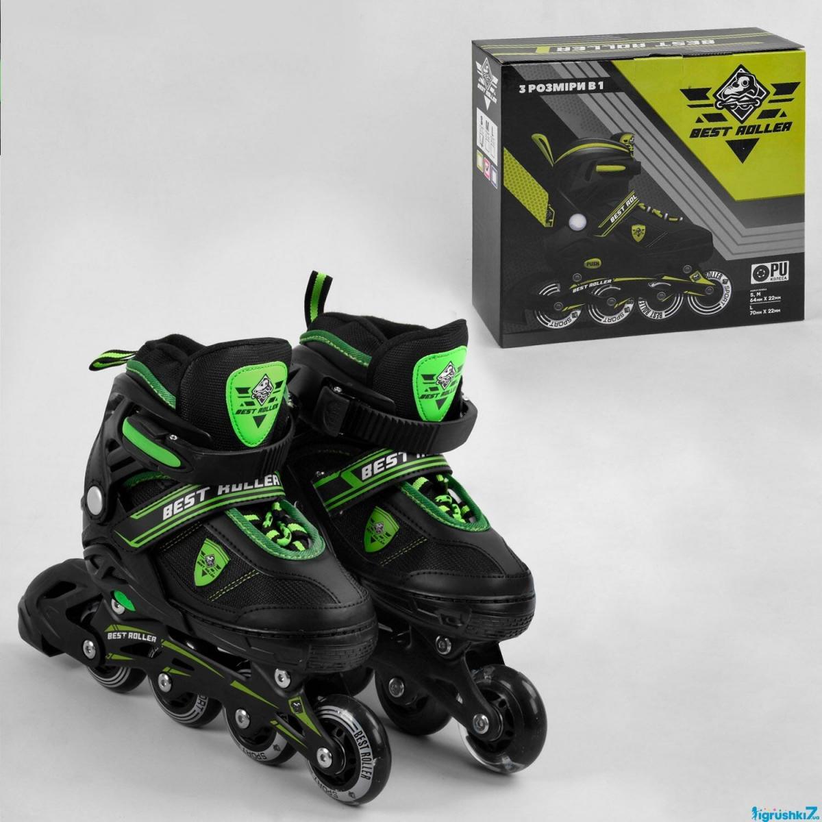 Ролики Best Roller /розмір 31-34/ ЗЕЛЕНІ, ПЕРЕДНЄ КОЛЕСО ЗІ СВІТЛОМ, d коліс - 6.5 см, в коробці
