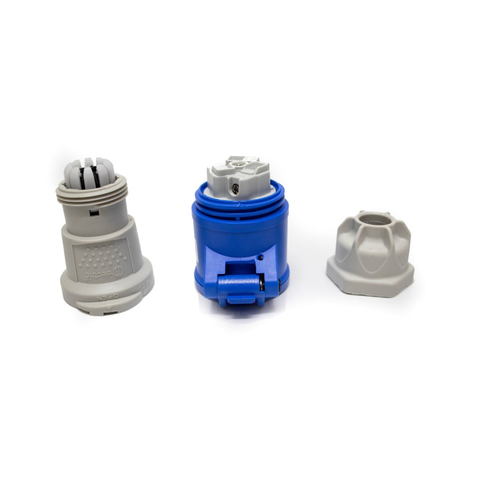 Особливість конструкції забезпечує надійний контакт штирів до пластини гнізда, захист від випадкового відключення електрообладнання.