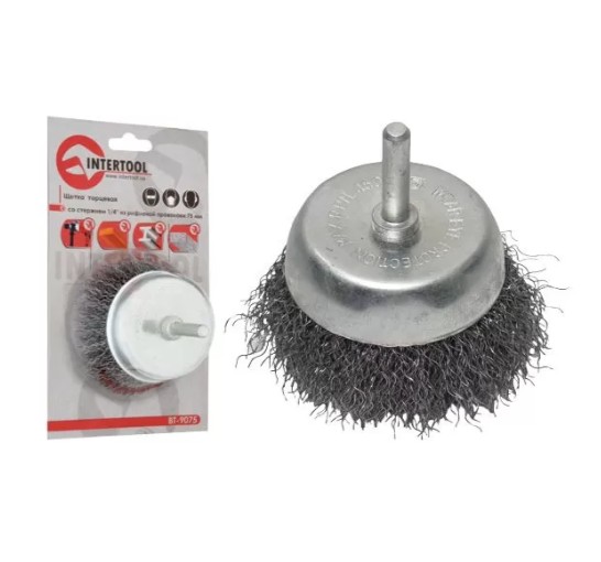 Щітка чашкова 100 мм для дриля, 1/4" (кручений дріт) INTERTOOL BT-9100